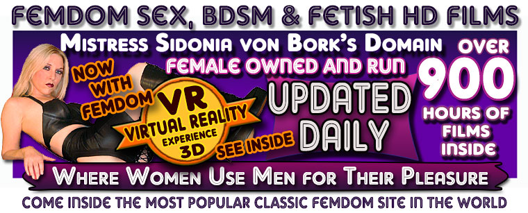 Watch real-life Mistresses & Dominatrixes train their slaves with CBT, NT, CP & strapons. See dominant women sexually use & turn men into their sex slaves in BDSM femdom sex scenes. Plus amazing FLR domestic femdom with dominant wives cuckolding & keeping their subby hubbys in chastity. Men transformed enforced sissy feminization using sexy Xdressing/crossdressing. Femdom 3D VR makes you feel like you are really watching the action, extreme female domination Femdom sex in amazing fetish HD films and clips. All overseen by head Domme Mistress Sidonia & over 100 of the best international Mistresses & Dominatrixes. Femdom scenes also include high resolution galleries & trailers with an easy search function to find all the your favorite kinky mistresses & the hottest femme fatales to indulge your wildest kink.