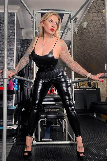 Mistress Ava Von Medisin is a highly experienced prodom, lifestyle player and fetishist. This beautiful lady boasts a striking, super-fit, muscular, tattooed physique that radiates power and allure. Her curvaceous body is a testament to pure elegance, embodying superior femininity. Her red-painted lips need only whisper a command, in her well-mannered English tone, to bring you to your knees. A fervent admirer of 1950s glamour – lingerie, stockings, and killer high heels, she embodies the timeless, seductive essence of a Femme Fatale. This is one formidable, impressive lady who’s sadistically skilled in the art of erotic BDSM. Bringing her very own unique flair and panache to both her appearance and her sessions. Mistress Ava is based in Norfolk with her own chambers Number 10 and specialises in CP, Strapon, Anal Play, Slave Training & Sissification. She also runs and is involved a number of exclusive femdom events including her Annual Femme-Domme Retreat in Norfolk & The Secret Dolls House, a prestigious sissy maid training event.
